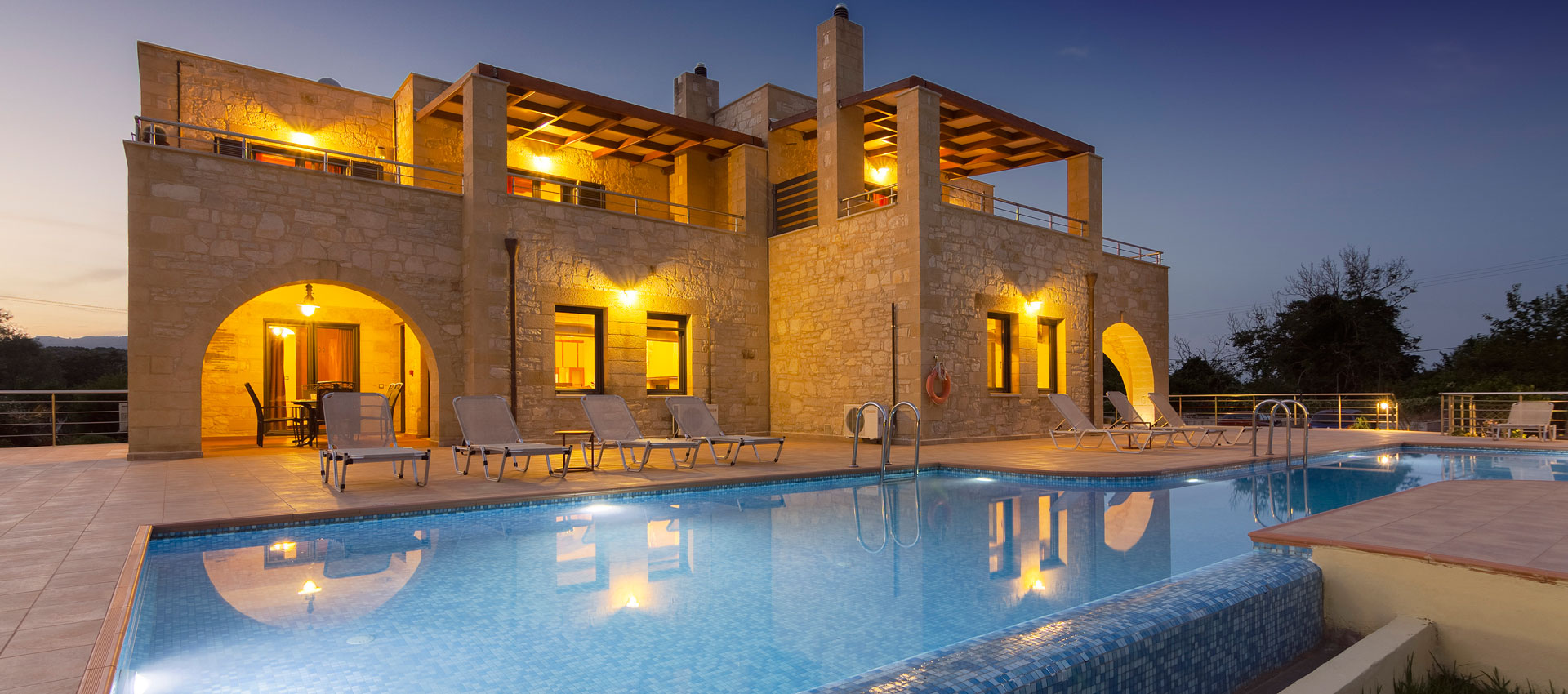 Kalives Villas are two newly built, stone holiday houses for rent with private swimming pool. Each one of the villas provides three bedrooms and they are located in the village of Kalives, in Apokoronas Chania, Crete.